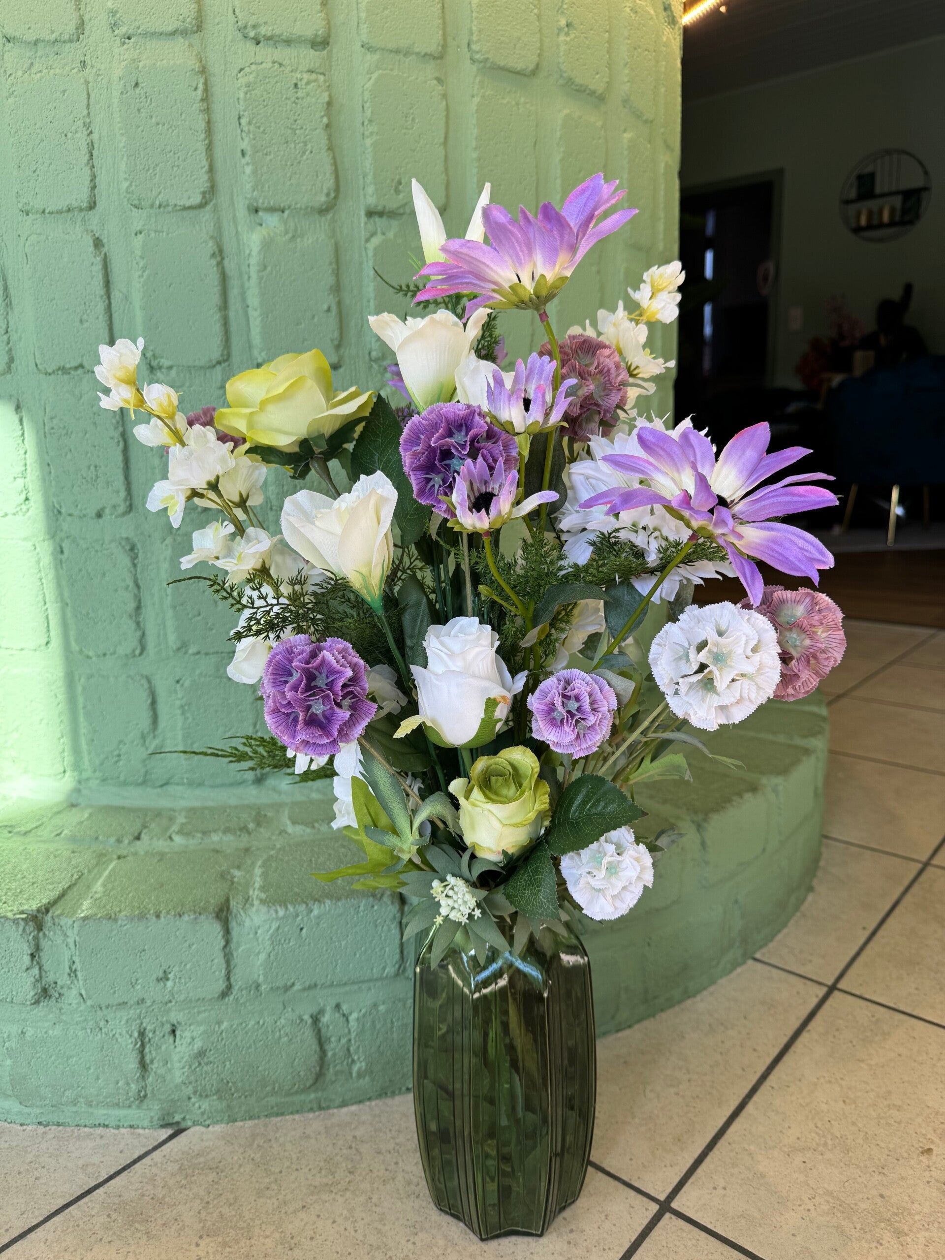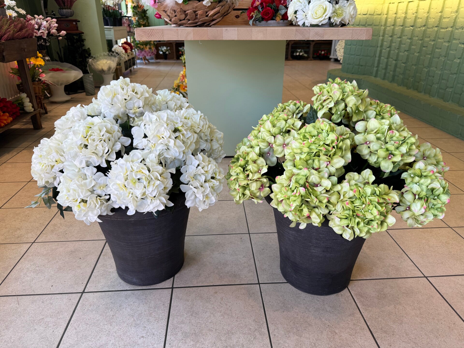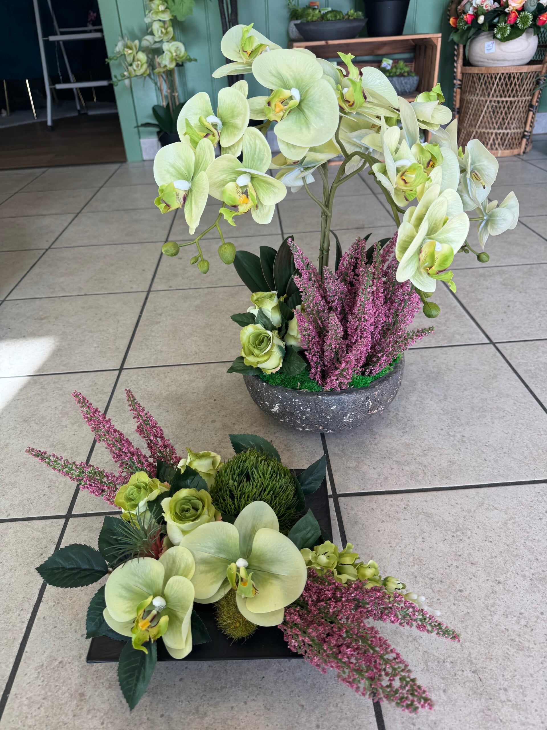 Dit zijn VOORBEELDEN van bestellingen die ik op aanvraag of a la minute heb gemaakt voor de klanten die zelf hun vazen, potten, bakken, rekjes of glas hebben binnen gebracht.